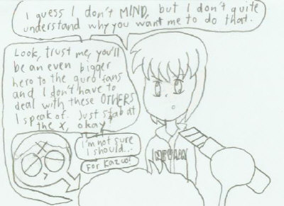 ...Thought not. Damn my luck. Got more in the I.F. gallery and in the Random Musings section. Oh yeah, check that Variable Constant section there. You're in for a surprise. Oh, and last thing. I plan on axing the Anime Character Conversations and Zero Wing sections. Wanna stop me, even though you know no more is going in? E-mail me- odds are they'll stay if I get more than one e-mail. ...Last message. Two more links. View them.